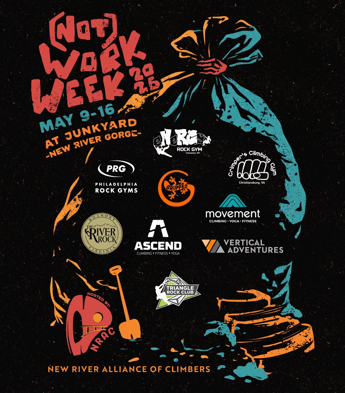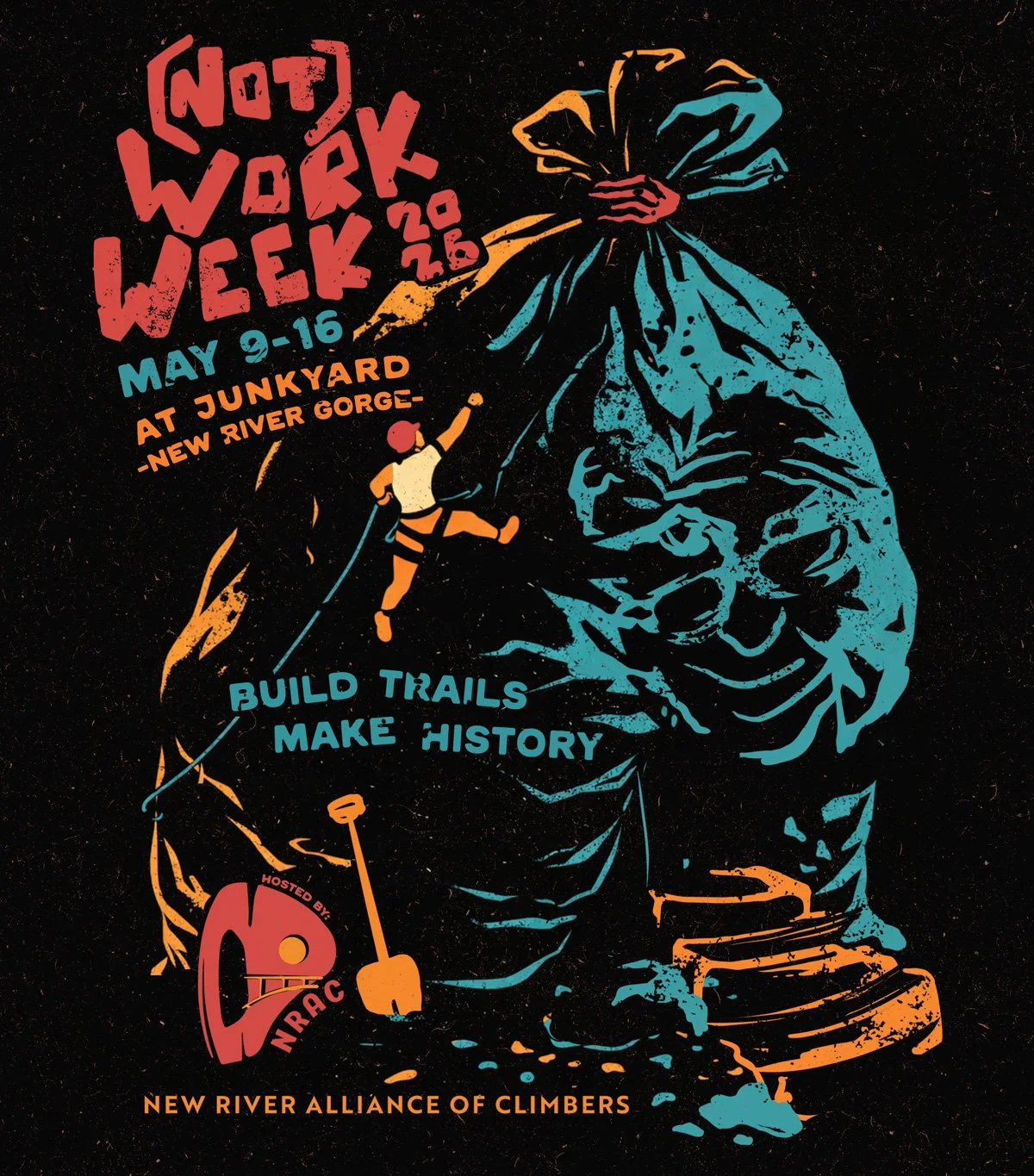 Saturday, May 9th - Saturday, May 16th, 2026 We will focus on enhancing the approach trail and belay zones at the Junkyard Wall!